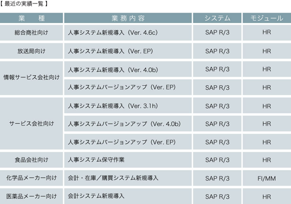 最近の実績一覧